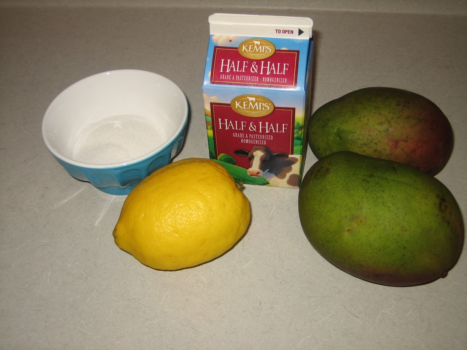 - Chop mango’s and place in blender. Top with sugar. Do this while prepping the lemon to allow sugar to dissolve in the fruit.