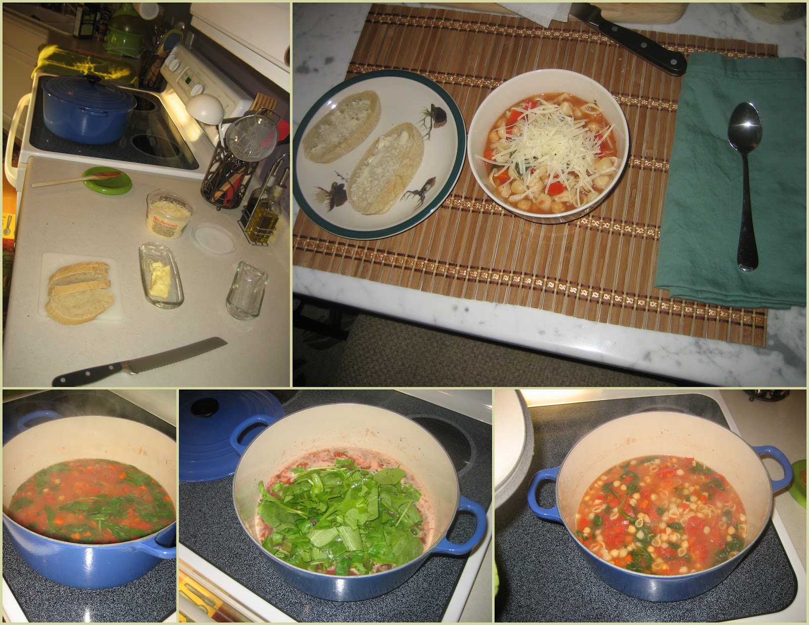 I found the recipe out of a Better Homes & Gardens magazine from this spring. And the thing that I like most about this recipe is the adaptability of it. I didn’t have exactly everything that the recipe called for, but I had most of it and the substitutions worked great. Probably didn’t hurt that I had made some home made french bread that week to accompany the soup.