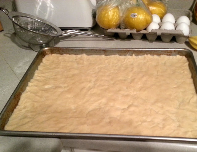 - In a clean bowl, combine eggs, sugar, lemon juice, lemon zest and flour and whisk until fully incorporated. Pour over top of crust.