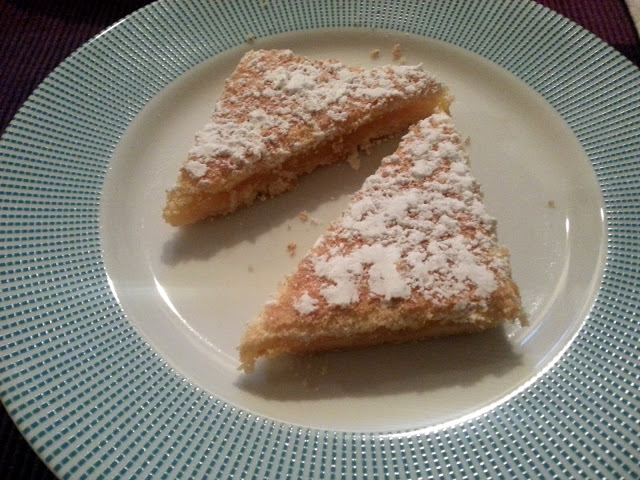 - Bake for 30-35 minutes or until filling is set. Let cool to room temperature. Dust with Powdered Sugar and cut into triangles, squares or small bite size pieces.