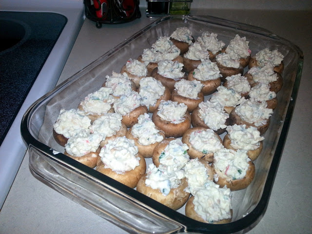 That crazy cook could really pump out some good food, and one of the things she made was crab stuffed mushrooms. A few days a week, she would bust out the cream cheese and a ton of spices and go to work on compiling some of the tastiest stuffed mushrooms ever! I don’t know if there was an actual recipe because there were never measurements of ingredients, just eye-balling and taste testing until it was right.