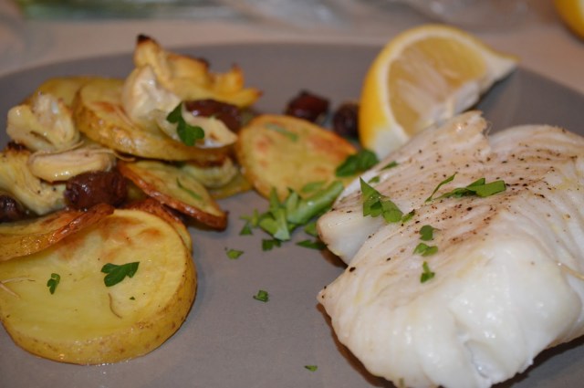 **Recipe from FoodNetwork.com for Roasted Cod with Artichoke.