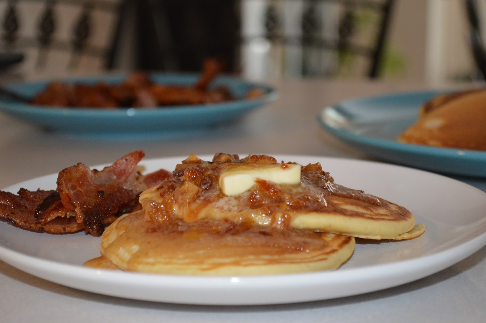I had one of those mornings this Saturday, only to come down and find we were out of the trusty pancake mix. In hindsight, I’m happy that we ran out because I found this recipe on ‘Cookpad’ (an app on my phone), made a few variations and added my own homemade simple syrup and that is what makes this Saturday morning amazing!