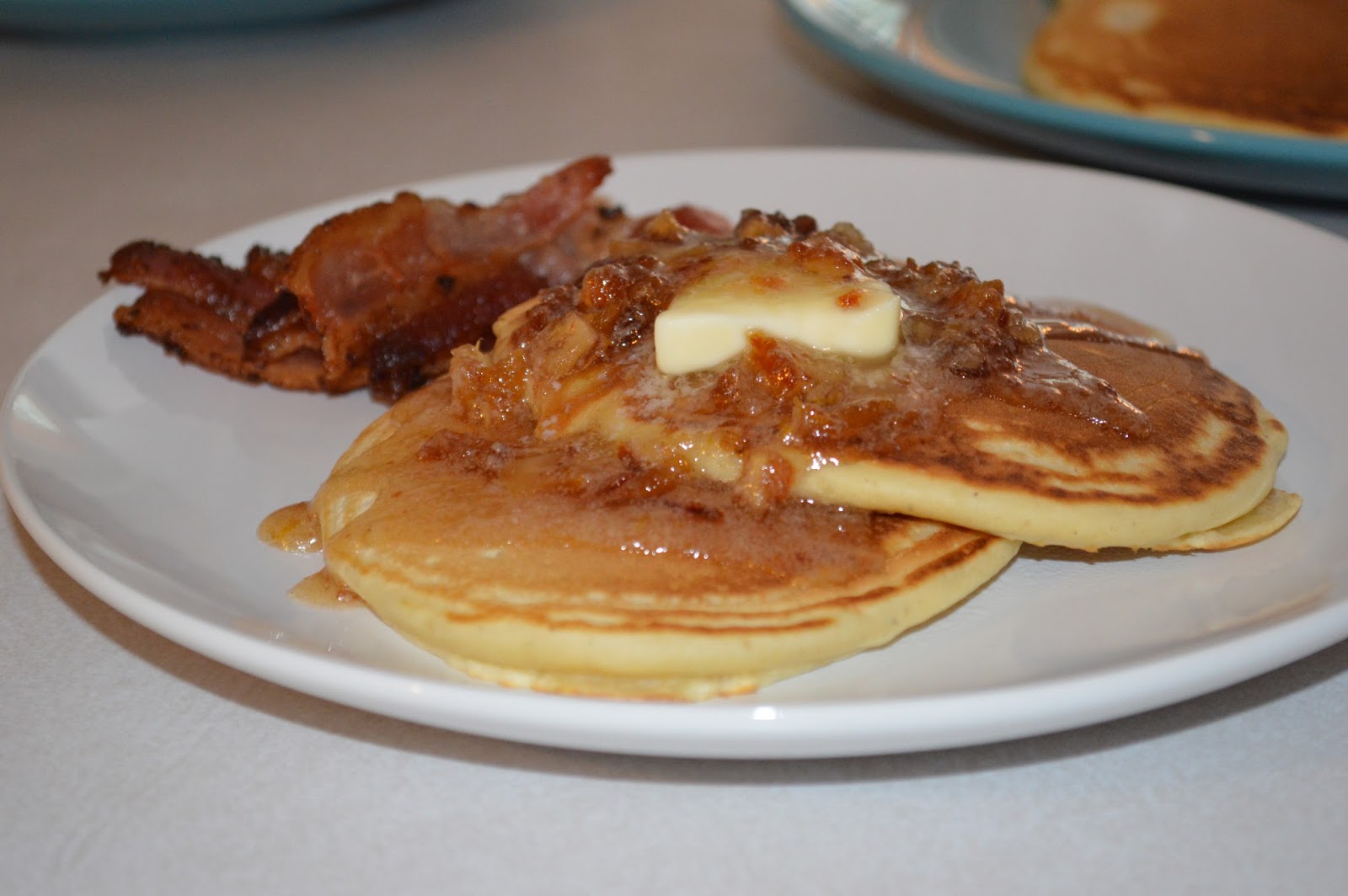 - Serve pancakes with a pat of butter and drizzle simple syrup over the top. It is great with a side of bacon.