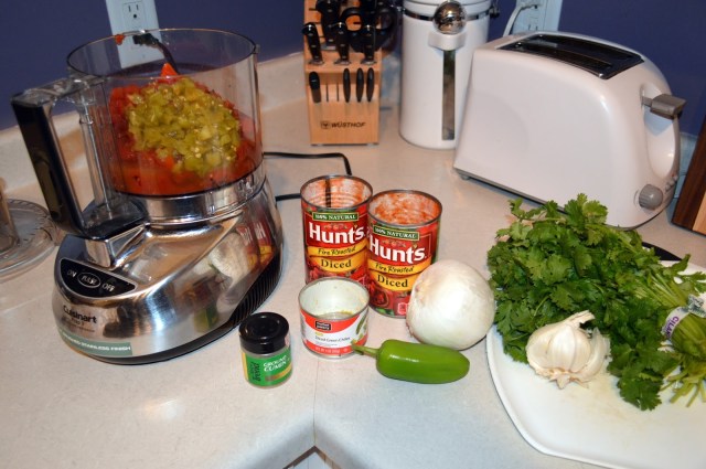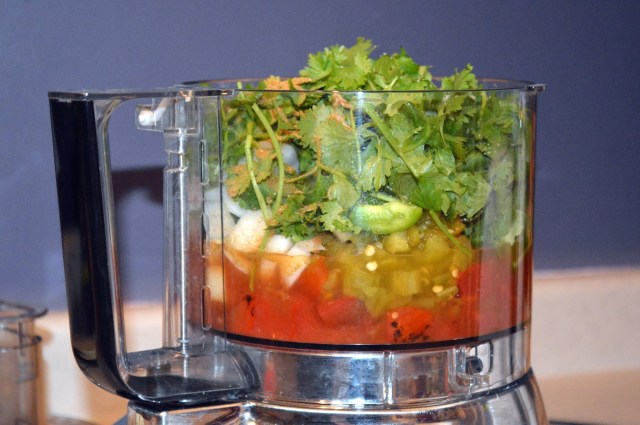 - Mix all ingredients in food processor and pulse till everything is broken down to the same size. Store in fridge. Serve with tortilla chips or your favorite taco, burrito or chimichanga recipe.