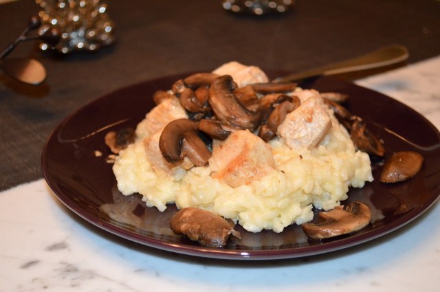 Over the months, we have done different adaptations with cubed chicken and as you can see, adding sauteed mushrooms. This is one of the #1 kid approved recipes in our house. Especially when served with Risotto and a side of ranch dressing.
