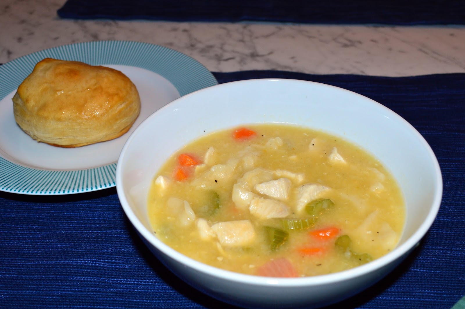 The base is going to be the same as other chicken soups, but the dumpling is really the cheater part of it. Instead of making your own dough, use a tube of store bought biscuit dough cut into smaller pieces that will puff up and take in all of the chicken flavor of the broth. Easy on the weeknight and the kids LOVE it!