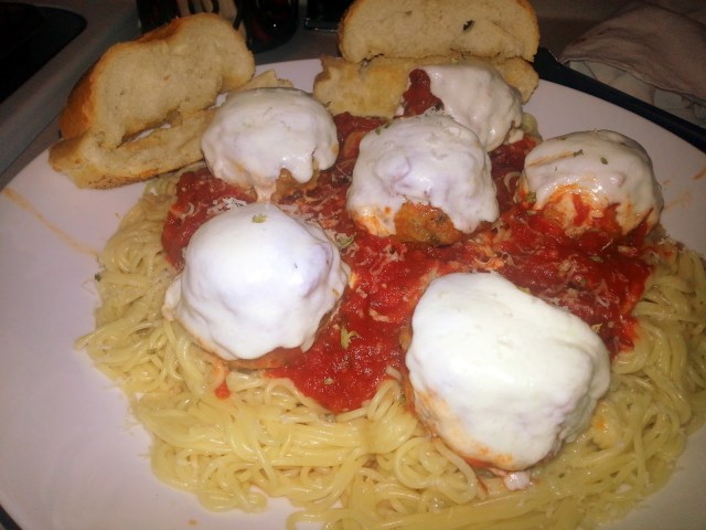 Now, I don’t want to knock the traditional spaghetti and meatballs because it has it’s place and is quite tasty in its’ own right. I just like that we were able to find something new and a little different to make a fun dinner for the family. If you have fussy kids, just don’t tell them it’s chicken and they will gobble it up.