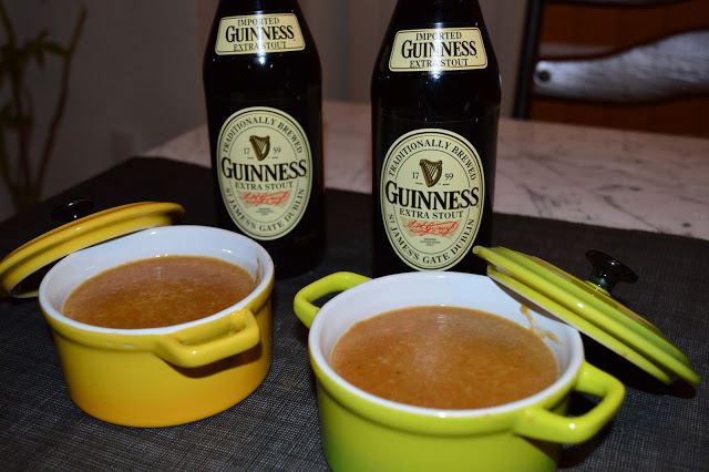 The recipe is made to serve two people, but is easy to double if serving more people. It is easy to make, just make sure that you have the time to soften the vegetables and cook all the flavors together, but it comes together smoothly at the end with the creaminess of the cheese and splash of richness from the Guinness. Enjoy your St. Patty’s Day!!!
