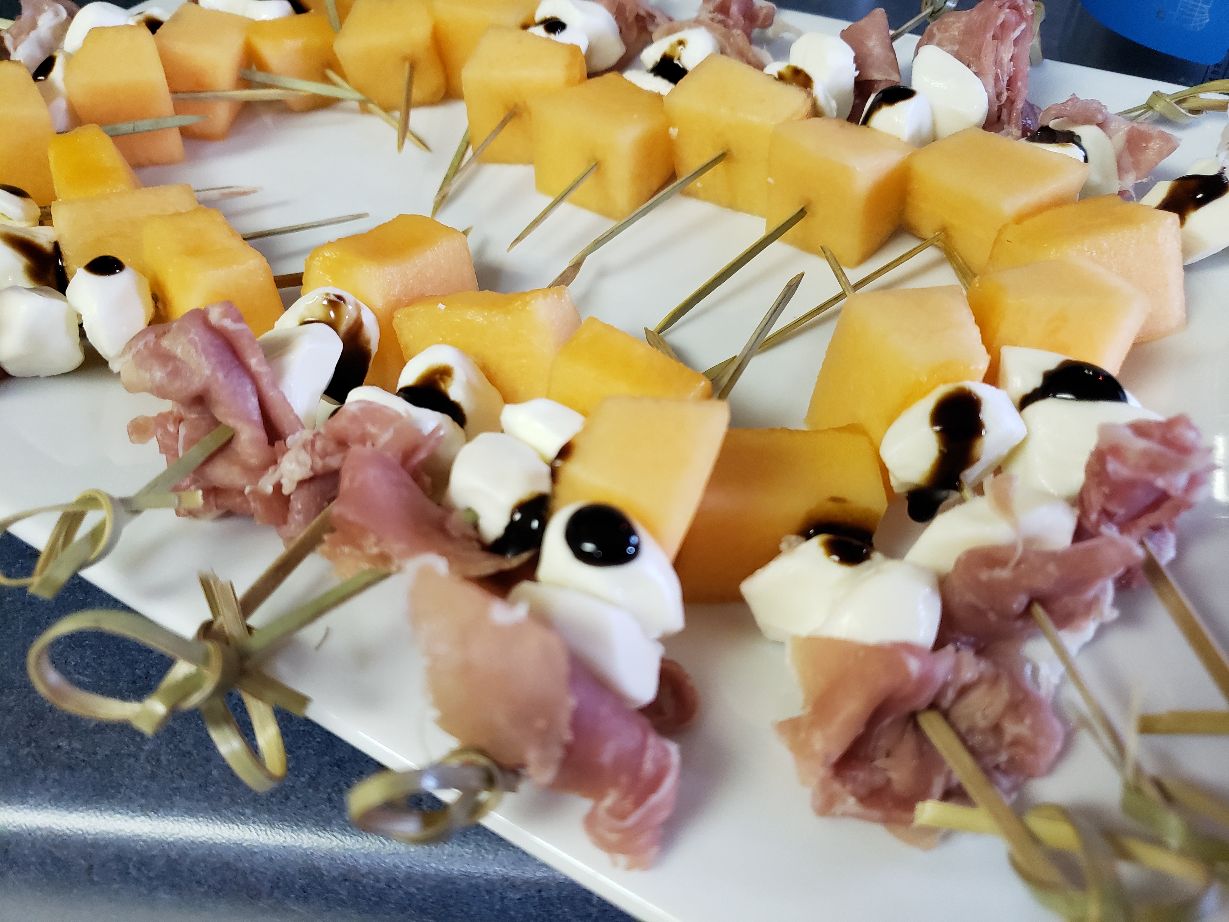 Although all soft in texture, the unique combination of flavors leaves you wanting more than one skewer. The prosciutto and melon brings a saltiness, where the sweet melon and balsamic reduction balance out for a refreshing starter to any meal or party.