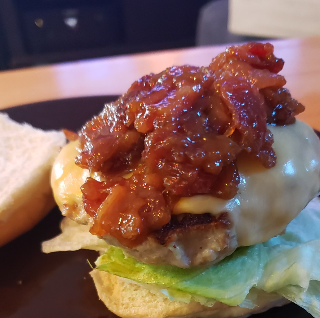I will never forget the first time I had bacon jam (ok…I’m sounding dramatic), but really, for a lover of bacon, the flavor is quite amazing. It was at a local restaurant called Iron Tap and they serve it on Pimento Cheese Bruschetta (OMG – so good) and what else could they serve it on, but their Bacon Jam Burger. It left an impression…sweet bacon was the perfect compliment to the burger.