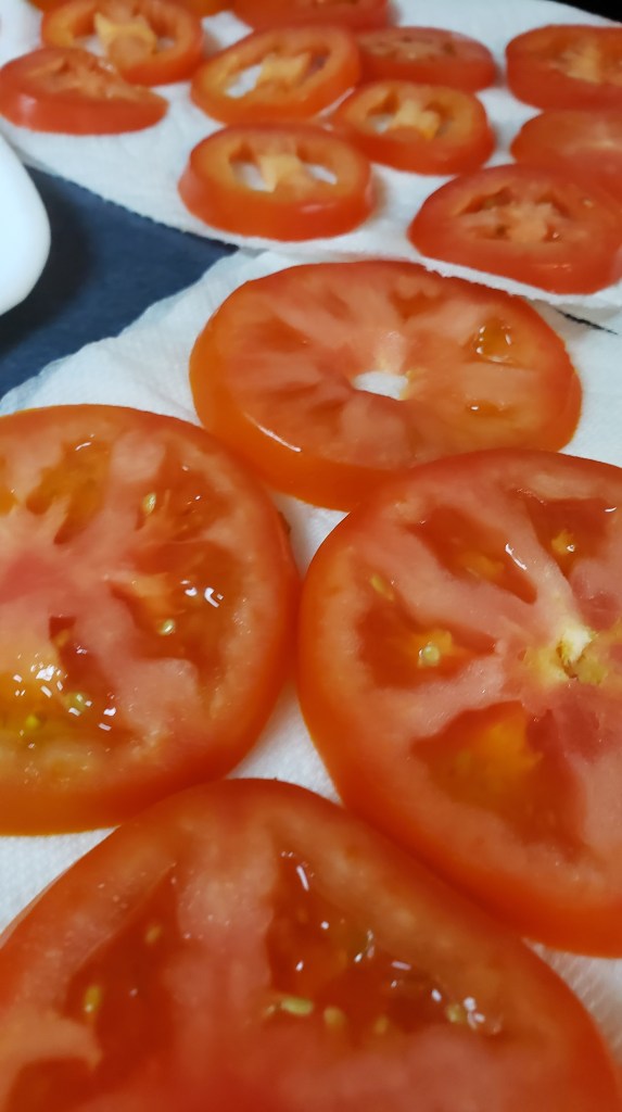 I used a combination of roma and heirloom tomatoes to include varying tomato textures and flavors (would have been fun to find some of the multi-colored heirlooms – maybe another day).