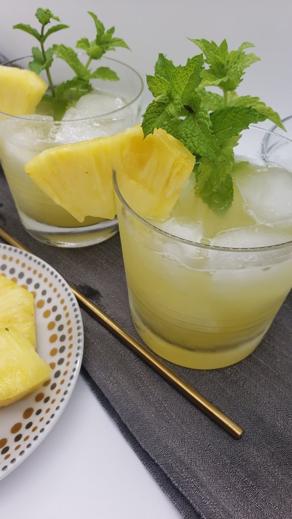 Modification #2: Mix 2 1/2 oz pineapple vodka with 3/4 oz mint infused simple syrup in a shaker. Pour over ice in a low ball glass. Either drink straight or top with club soda. Garnish with mint.