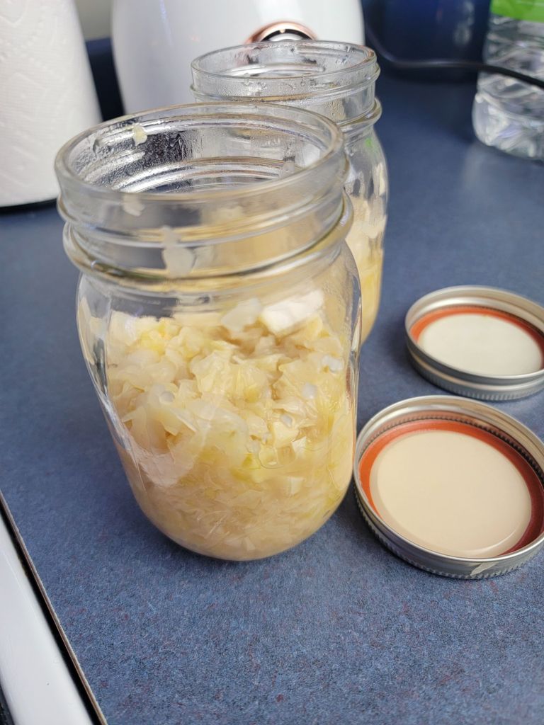 I have not attempted the long-term fermented sauerkraut. I will leave that to my dad (he gifted us some of that this winter).