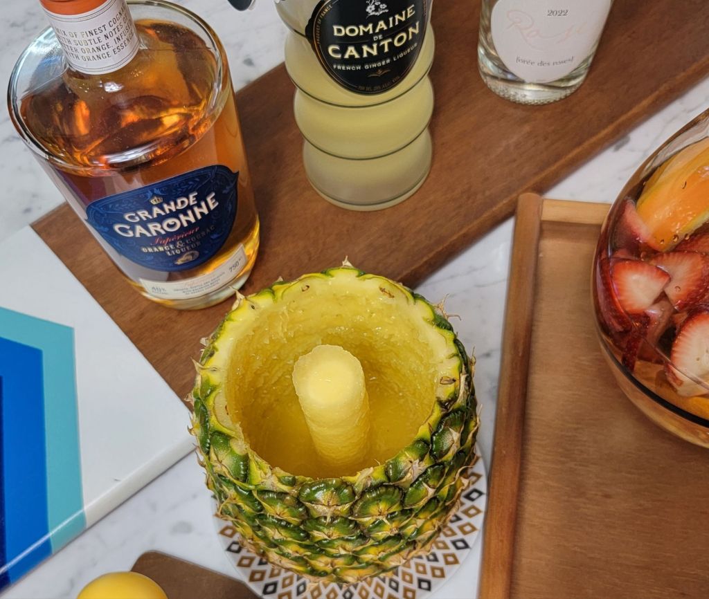 I am a big fan of complex flavor profile of ginger. We purchased a ginger liquor for a different cocktail recipe, and I knew that I wanted it to pair with a dry Rosé. Finish that off with some smooth orange liquor and all the glorious fruit, including some of the fresh pineapple juice, and you have an afternoon fit for relaxation.