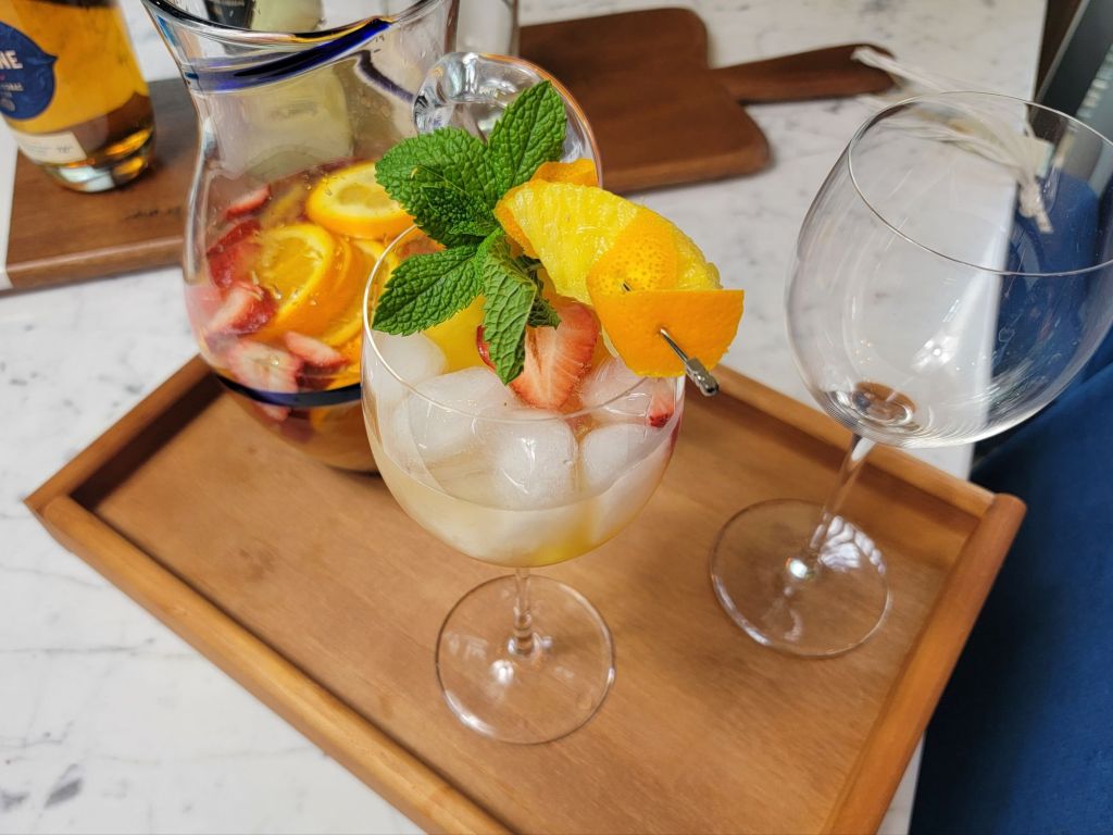 Refreshing was the word that came to mind when I was inventing the combo. If part of the invention was just reviewing what we had at home. Truly, it is hard to go wrong with sangria – as long as you let it sit for at least two hours for the flavors to come together.