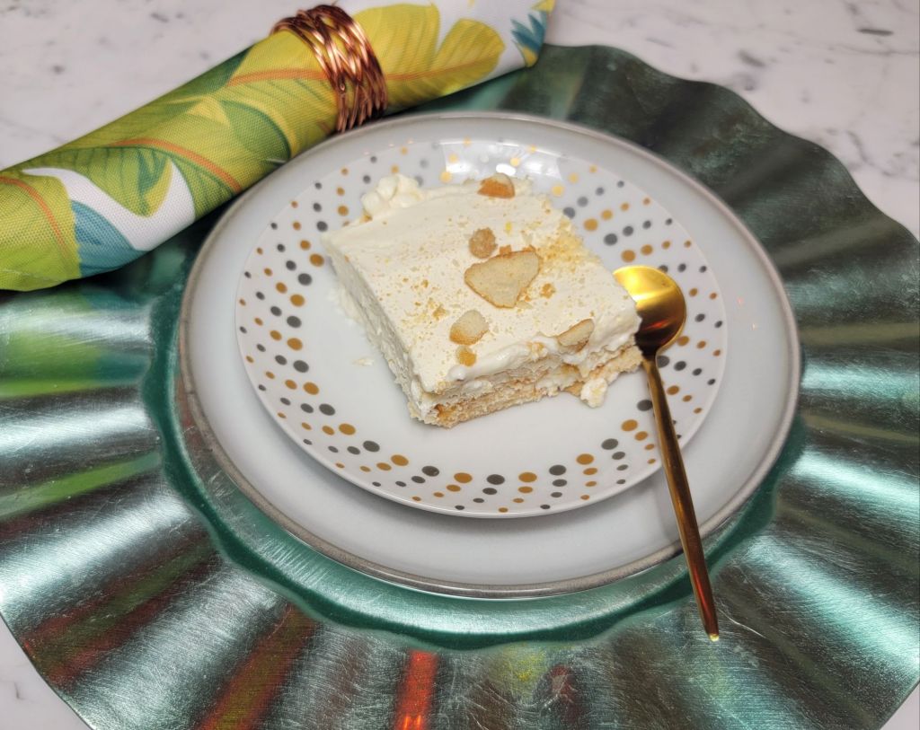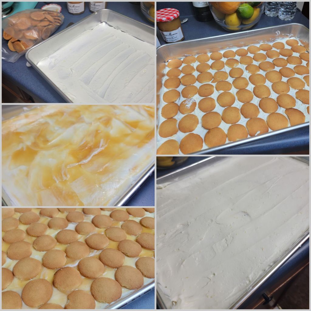 Spread 1-2 Tbsp of cream mixture on the bottom of a 9×13″ cake pan, enough for the Nilla wafers to stick to. Add one layer of Nilla wafers across the bottom of pan. Top with 1/3 of the remaining cream mixture and spread with offset spatula. Then add 1/2 of the lemon curd and spread over the cream. Add another layer of Nilla wafers, then 1/3 of cream mixture, the other half of the lemon curd. Finish the top with the heavy cream.